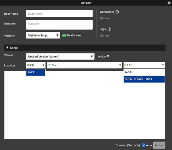 - For Location, select the left dropdown (int/ext), take note of options